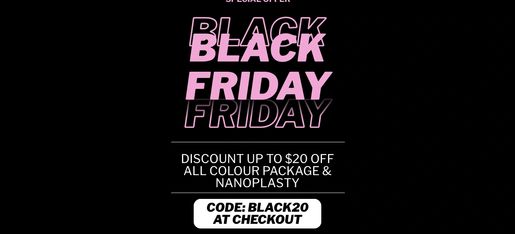 Level up your look with an awesome $20 off all colour packages and Nanoplasty treatments when your appointment is booked and completed within November. Sale ends 29 November — limited spaces, so secure your spot today! Now's the perfect time to treat yourself to a stunning makeover and kick off the holiday season with some extra sparkle!